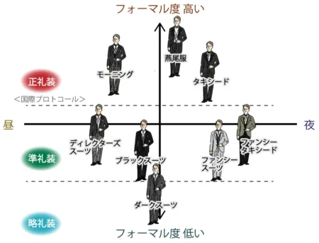 モーニングスーツは「モーニング」「モーニングコート」とも呼ばれフォーマルスーツのことで、昼の礼装として国際プロトコール(国際儀礼に着られる衣類)に定められている、昼間に着用する最上級の正礼装に当たります。