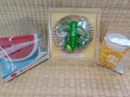 私は、伯母のご主人様に「枝豆」のろうそくをお供えさせていただきました。生前、ビールが大好きで、伯母の茹でた枝豆と晩酌が日課だったと聞いたので、いいかなあと思ってお持ちしました。伯母は、ご主人様が亡くなってから持病が悪くなり、通院したりして、少し元気がなかったのですが、「わーこんなのあるん!おもしろいな(笑)」と笑ってくれました。「自分でも何か探してみよかなあ。集めてみよか。」と面白がってくれました。