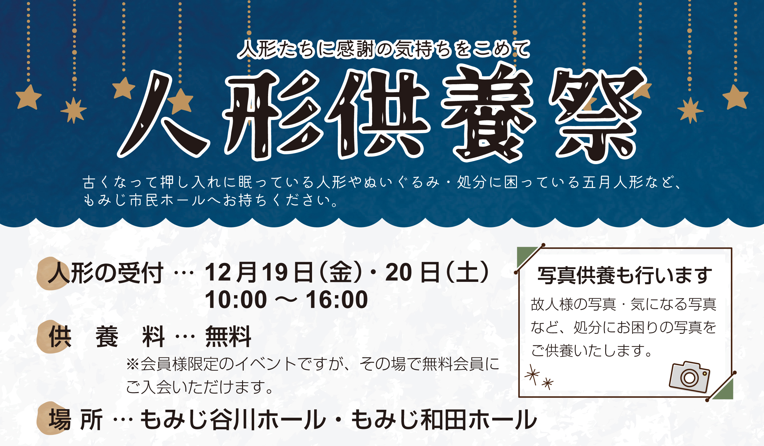 葬祭部の山下です。 来る12月19日(金)・20日(土)の2日間、もみじ市民ホールにて…